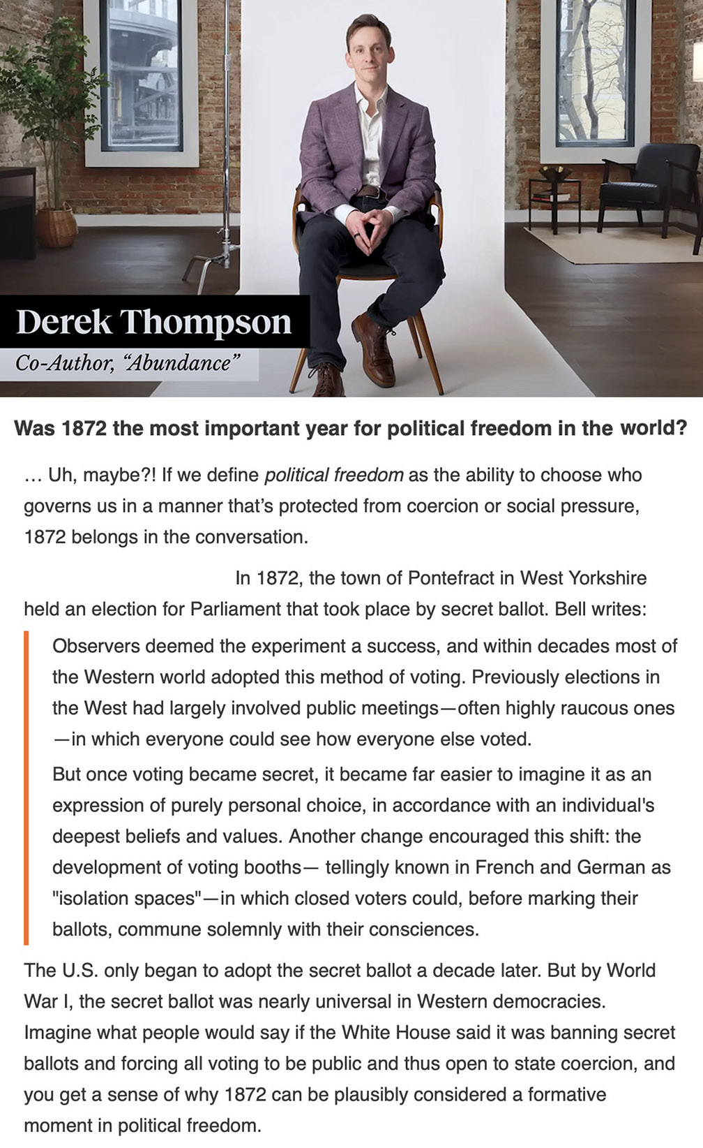 Derek Thompson 2025 - Was 1872 the most important year for political freedom in the world?